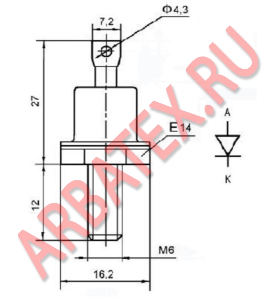 Масса диода не более 12 г.