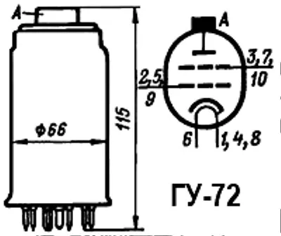 ГУ-72 тетрод генераторный относится к разделу электровакуумных приборов и ламп различного назначения. По конструкции тетрод генераторный состоит из вакуумно-герметичной, жесткой оболочки, внутри которой отсутствует кислород.