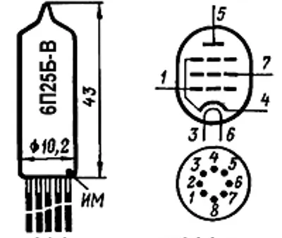 6П25Б-В сверхминиатюрный выходной пентод повышенной надежности предназначен для усиления мощности низкой частоты. По конструкции состоит из вакуумно-герметичной, жесткой оболочки, внутри которой отсутствует кислород.