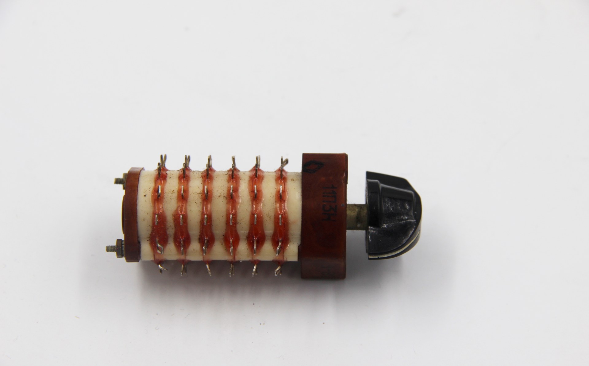 П2Г3 11П3Н переключатель галетный высокочастотный гетинаксо-карболитовый, поворотный роторного типа,применяется для коммутации цепей постоянного и переменного тока в радиоэлектронной аппаратуре. Переключатели крепятся путем фиксации оси в отверстии панели с помощью резьбы оси и гайки переключателя.